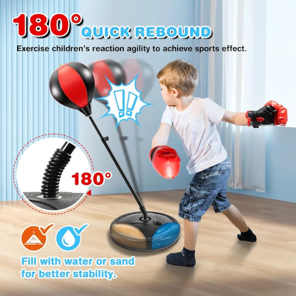Regalo popular para niños: el saco de boxeo es un gran regalo tanto para niños como para niñas. El interesante saco de boxeo para niños no solo puede mejorar la fuerza del brazo y la coordinación ojo-mano, lo que permite a los niños hacer más ejercicio y mantenerse alejados de las pantallas electrónicas, sino que también es ideal para la interacción familiar y el entretenimiento diario, y mejorar las relaciones entre padres e hijos.